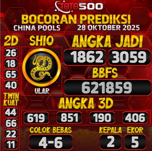 Selamat datang di TOTO500, situs prediksi togel terpercaya yang setiap hari menghadirkan angka jitu China Pools paling akurat dan update!