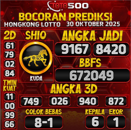 Selamat datang di TOTO500, situs prediksi togel Hongkong Lotto yang menyediakan angka jitu dan terpercaya untuk pasaran Hongkong Lotto (HK Lotto).