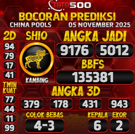 Melalui analisis data resmi dan tren angka terupdate, TOTO500 menghadirkan prediksi China Pools hari ini yang akurat dan mudah dipahami.