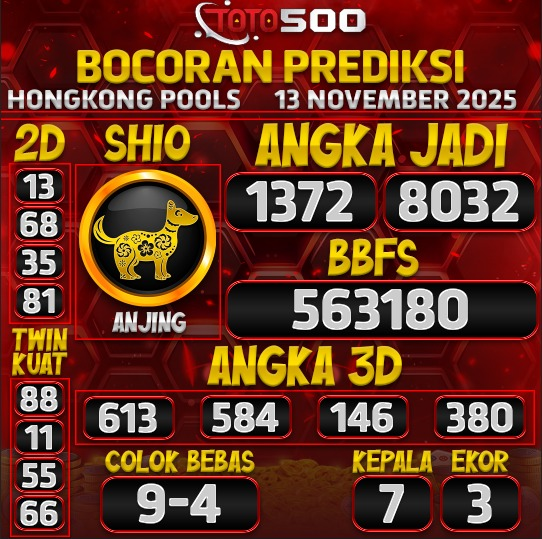 Selamat datang di TOTO500, portal prediksi angka jitu terpercaya yang setiap hari menyajikan bocoran angka dari berbagai pasaran populer.Sebagai lanjutan dari data yang telah kami kaji, kami menyusun prediksi togel Hongkong Pools yang memiliki pola result stabil dan peluang kemenangan besar.