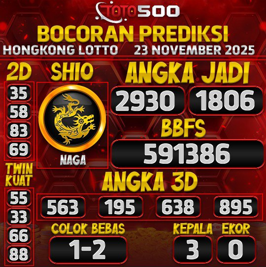 Selamat datang di TOTO500, situs prediksi angka terpercaya yang selalu menyajikan prediksi togel Hongkong Lotto hari ini dengan analisis akurat dan data terupdate.
