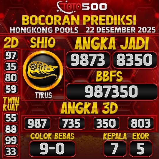 Selamat datang di TOTO500, situs prediksi togel Hongkong Pools yang menyediakan angka jitu dan terpercaya untuk pasaran Hongkong Pools (HK Pools).