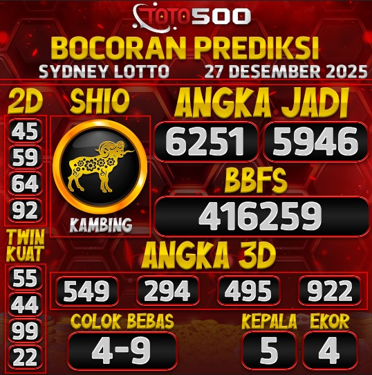 TOTO500: Prediksi Angka Togel Sydney Lotto Hari Ini