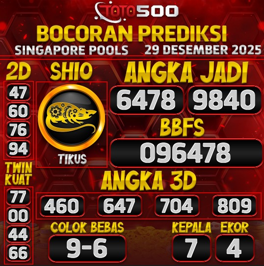Prediksi Singapore Pools hari ini dari TOTO500 dibuat dengan analisis profesional dan data valid.