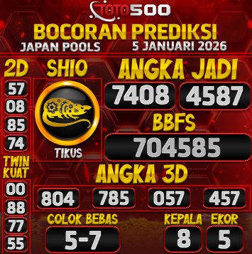 TOTO500: Prediksi Angka Togel Japan Pools Hari Ini Selamat datang di TOTO500 — situs prediksi angka jitu terpercaya. untuk semua pasaran togel internasional!