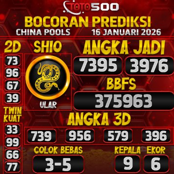 Selamat datang di TOTO500, portal prediksi angka jitu terpercaya yang setiap hari menyajikan bocoran angka dari berbagai pasaran populer. Kali ini, kami menghadirkan prediksi togel China Pools, salah satu pasaran internasional yang digemari karena memiliki pola result konsisten dan peluang kemenangan yang menarik.
