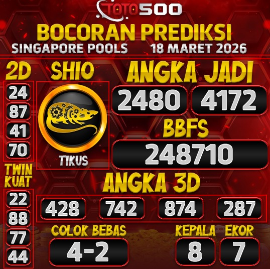 Prediksi Singapore Pools hari ini dari TOTO500 dibuat dengan analisis profesional dan data valid.