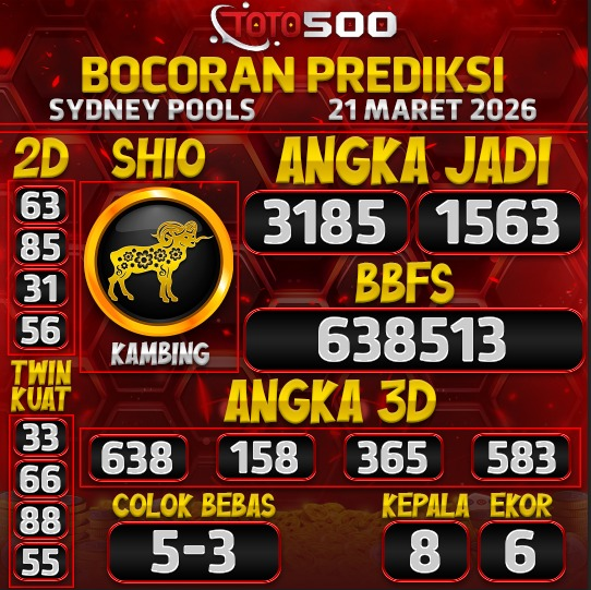 Selamat datang di TOTO500, situs prediksi togel Sydney Pools terpercaya yang setiap hari menyajikan angka jitu, bocoran akurat, dan analisis hasil keluaran resmi.