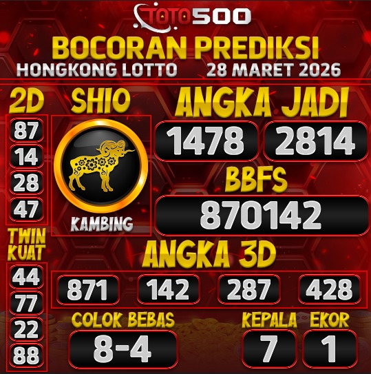 Selamat datang di TOTO500, situs prediksi togel terpercaya yang selalu menghadirkan prediksi angka togel Hongkong Lotto hari ini dengan analisis akurat dan data terupdate.