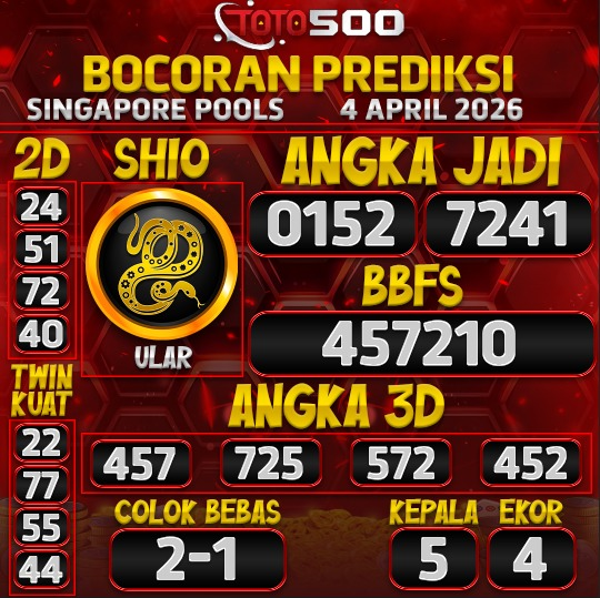 Selamat datang di TOTO500, situs prediksi togel terpercaya yang setiap hari menyajikan angka jitu Singapore Pools terupdate dan akurat!