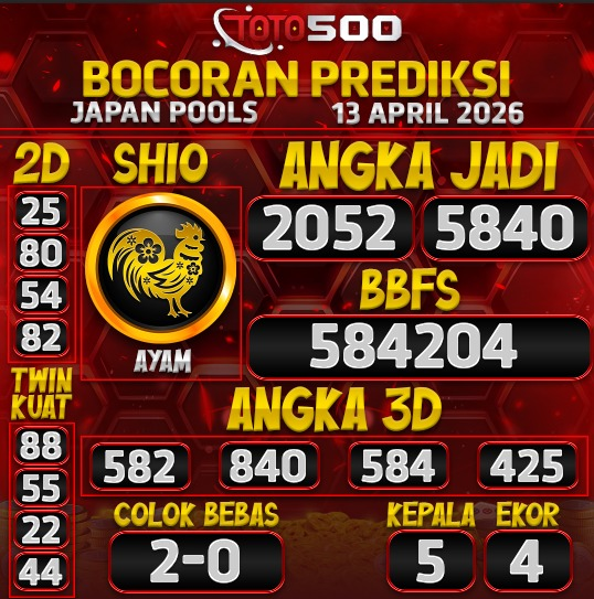 Selamat datang di TOTO500, portal prediksi angka jitu terpercaya yang setiap hari menyajikan bocoran angka dari berbagai pasaran populer. Kali ini, kami menghadirkan prediksi togel Japan Pools, salah satu pasaran internasional yang digemari karena memiliki pola result konsisten dan peluang kemenangan yang menarik.