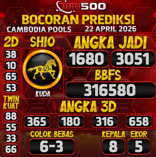 TOTO500 hadir sebagai salah satu sumber informasi terpercaya yang menyediakan prediksi angka Cambodia Pools hari ini secara akurat dan terupdate.